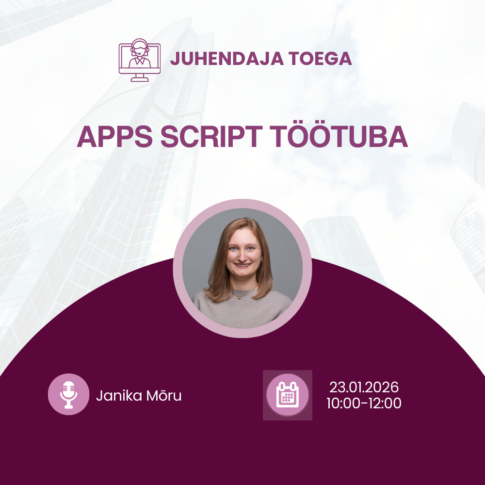 Avasta, kuidas muuta Google’i tööriistad nutikamaks ja just sinu töövoogude jaoks sobivaks! Sellel praktilisel Google Apps Script töötoas õpid looma enda vajadustele vastavaid nuppe ja funktsioone Google Sheetsis, Gmailis, Calendaris ja Drive’is – ilma arendajaks olemata.